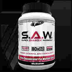 S.A.W. to ultra-skoncentrowana formuła przedtreningowa dla profesjonalistów. Preparat wykazuje silne działanie anaboliczne i drastycznie zwiększa objętość pracujących mięśni. S.A.W. zapewnia im dodatkowe dotlenienie, odżywienie i impuls do wzrostu. Unikalny kompleks Beta- Alaniny i aktywnych neurostymulatorów poprawia wytrzymałość i koncentrację oraz zwiększa zasoby energetyczne organizmu. Preparat zapobiega przedwczesnemu zmęczeniu i nadmiernemu zakwaszeniu tkanek. S.A.W. wspomaga budowanie siły i masy mięśni, a także poprawia wydolność podczas ciężkich wysiłków fizycznych.