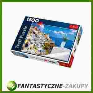 Puzzle 1500 elementów z widokiem na greckie Santorini. Po ułożeniu powstanie obrazek o wymiarach 85x58cm. Wysoką jakość, nasycenie kolorów i bezpieczeństwo układania zapewnia wykorzystanie materiałów ekologicznych.