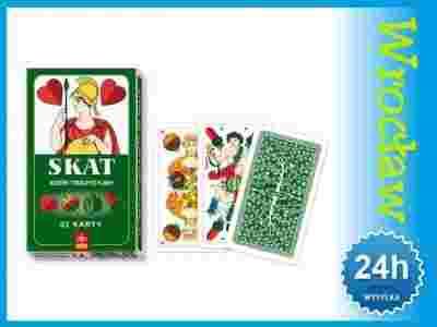 Skat, nazywany też "śląskim brydżem", to popularna gra karciana dla 3 graczy, wymyślona w XIX wieku w Niemczech i rozpowszechniona zwłaszcza na Śląsku i Kaszubach. Przygotowaliśmy dla Państwa talię kart przeznaczonych specjalnie do tej gry. Na 32 kartach umieściliśmy kolory charakterystyczne dla talii niemieckiej, specjalne wizerunki figur oraz blotki przedstawiające znaczące miasta Polski. Gra dla wymagających graczy, którzy lubują się w rozrywce wymagającej skupienia i wytężenia umysłu.