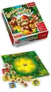 Ekscytująca gra planszowa Szalone małpy to propozycja na wesołą zabawę dla całej rodziny. Wybierz Przywódcę Stada i pomóż swoim małpom schować się przed palącym słońcem. W cieniu czeka na nie prawdziwa bananowa uczta – ale żeby dostać się do pysznych, dojrzałych owoców, małpy muszą nauczyć się zwinnie pokonywać zarośla dżungli, przeskakując przez kolejne pola na planszy. Zadanie nie jest proste – tropikalne lasy są gęste i wszystkie małpy wyglądają tak samo! Bądźcie czujni, bo w tej grze małpy są szalone – chwila nieuwagi i do kiści bananów możecie doprowadzić małpy przeciwnika! Ten, kto zdobędzie najwięcej kiści, zostaje zwycięzcą. Kto najlepiej zapamięta, gdzie są jego małpy i pierwszy ucieknie z polany? Gra ćwiczy pamięć wzrokową i spostrzegawczość, gracze mają do wyboru wariant łatwy i utrudniony. Zabawna, kolorowa grafika i proste zasady gry zapewniają udaną zabawę dla dzieci i dorosłych. Szalona rozgrywka i masa emocji!