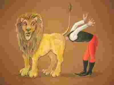 Treser bez licencji, satyra-akwarela-tempera