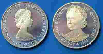 Tristan Da Cunha Anglia Srebro Proof 25 Pence 1980