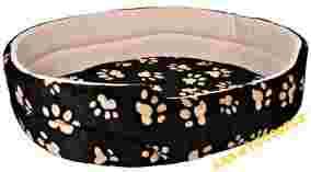 Pluszowe legowisko z wypełnieniem z pianki. Posiada wyjmowaną poduszkę i nylonową antypoślizgową matę. Bardzo ładny wzorek w łapki. Przyjemny w dotyku. Kolor CZARNY.