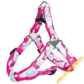 Nylonowe szelki dla psa z wszytym modnym wzorkiem. Pełna regulacja. Kolor różowy