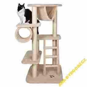 Bardzo elegancko wykończony i rozbudowany drapak dla kotów. Zawiera jedną, dużą i stabilną podstawę, aż cztery półki - tarasy do leżenia, tunel, hamak oraz drabinkę. Wszystko pokryto miękkim i przyjemnym pluszowym futerkiem. Siedem grubych (średnica 9cm), wykończonych sizalową linką pieńków do drapania, zapewnia kociemu drzewku stabilność.