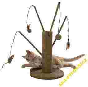 Wspaniałe, naturalne kocie drzewko w całości pokryte plecioną morską trawą - taki materiał doskonale nadaje się do drapania, a jest jednocześnie przyjemniejszy niż sizal. Drapak wyposażono w 4 wędki, każda z inną zabaweczką na sznurku. Sznurem do drapania pokryty jest zarówno wałek jak i podstawa.