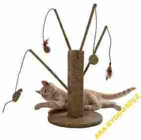 Wspaniałe, naturalne kocie drzewko w całości pokryte plecioną morską trawą - taki materiał doskonale nadaje się do drapania, a jest jednocześnie przyjemniejszy niż sizal. Drapak wyposażono w 4 wędki, każda z inną zabaweczką na sznurku. Sznurem do drapania pokryty jest zarówno wałek jak i podstawa.