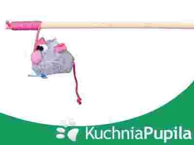 Zabawka myszka pan młody zawieszona na wędce o długości gumy 30cm. Zabawka wyposażona jest w dzwoneczek i wstążkę. Szczególnie wytrzymała. Część zysku ze sprzedaży tej zabawki firma Trixie przeznacza na ochronę zwierząt.