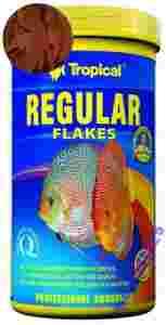 Wieloskładnikowy, podstawowy pokarm płatkowany przeznaczony do codziennego karmienia wszystkich odmian barwnych paletek oraz innych gatunków ryb o dużych wymaganiach pokarmowych. Wysoki poziom białka pokrywa potrzeby pokarmowe form hodowlanych paletek, wpływając na ich prawidłowy wzrost i rozmnażanie. Szczególnym źródłem łatwostrawnego białka i aminokwasów egzogennych są kryl i kalmary, które odpowiadają również za wyjątkowy smak pokarmu. Składniki roślinne, w tym pokrzywa i glony spirulina, regulują pracę przewodu pokarmowego, chroniąc ryby przed groźnymi skutkami zaparć. Regular został wzbogacony o dużą dawkę L-karnityny, która aktywizuje metabolizm tłuszczów, dostarczając dodatkowej dawki energii.