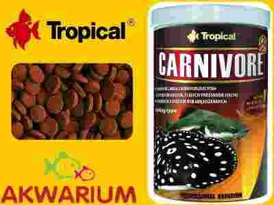 Wysokobiałkowy, tonący granulat dla ryb dennych – CARNIVORE – to nowa propozycja firmy Tropical dla miłośników ryb mięsożernych. Wysoki poziom łatwostrawnego białka zaspokoi potrzeby zarówno sumów, jak i bardzo wymagających płaszczek, wężogłowów itp. CARNIVORE to doskonałe uzupełnienie diety wszystkożernych zbrojników oraz ciekawa propozycja dla większych gatunków pielęgnic, które podejmują pokarm z dna akwarium. Obniżona zawartość skrobi chroni ryby mięsożerne przed otłuszczeniem narządów wewnętrznych. Zastosowana w produkcji granulatu technologia HTST zapewnia bardzo wysoką przyswajalność składników odżywczych oraz bezpieczeństwo biologiczne produktu. Niespotykana hydrostabilność sprawia, że granulat niezwykle długo zachowuje swoją strukturę w wodzie, nie brudząc jej i nie uwalniając do wody cennych składników pokarmowych. Obecny w pokarmie beta-glukan w naturalny sposób wspiera działanie układu odpornościowego. Granulat CARNIVORE pakowany jest w nowe – transparentne – puszki wyposażone w filtr promieni UV. Opakowanie to łączy możliwość obejrzenia zawartości bez konieczności otwierania puszki z pełną gwarancją bezpieczeństwa pokarmu i zawartych w nim substancji odżywczych.