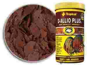 W płatkach D-Allio Plus wykorzystano od dawna znane i cenione właściwości czosnku (Allium sativum L.). Ten naturalny dodatek wzmacnia organizm ryb oraz wspomaga procesy trawienia. Wysoka wartość odżywcza pokarmu, optymalnie dobrany zestaw witamin i mikroelementów oraz naturalne właściwości czosnku sprawiają, iż jest to niezastąpiony pokarm podczas kuracji leczniczych, rekonwalescencji ryb i ich aklimatyzacji do nowych warunków. W celu urozmaicenia diety paletek i innych wymagających gatunków ryb poleca się stosowanie D-Allio Plus na przemian z innymi pokarmami marki Tropical, np. Regular, D-50 Plus, Astacolor.