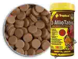 Wieloskładnikowy pokarm w postaci samoprzylepnych tabletek z dodatkiem czosnku (30%), przeznaczony dla młodych paletek, zbrojników, krewetek oraz ryb i skorupiaków morskich. W recepturze D-AllioTabin uwzględniono od dawna znane i cenione właściwości czosnku (Allium sativum L.). Ten naturalny dodatek wzmacnia organizm ryb oraz wspomaga procesy trawienia. Wysoka wartość odżywcza pokarmu, optymalnie dobrany zestaw witamin i mikroelementów oraz naturalne właściwości czosnku sprawiają, że jest to niezastąpiony pokarm podczas kuracji leczniczych, rekonwalescencji ryb i ich aklimatyzacji do nowych warunków. W celu urozmaicenia diety młodych paletek i innych wymagających gatunków ryb poleca się stosowanie D-AllioTabin na przemian z innymi pokarmami marki Tropical, np. D-50 Plus, Super Spirulina Forte Mini Granulat.