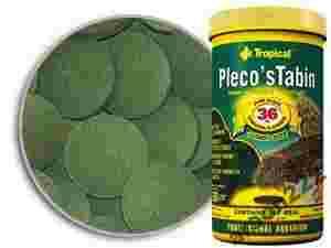Pokarm roślinny w postaci tonących tabletek o średnicy 25 mm, przeznaczony do codziennego karmienia dużych gatunków ryb z rodziny Loricariidae, np. Hypostomus plecostomus lub większej grupy mniejszych gatunków glonożernych zbrojników. Tabletki Pleco’sTabin zawierają 36% glonów Spirulina platensis, które dostarczają łatwostrawne białko, naturalne barwniki oraz substancje aktywujące układ odpornościowy ryb. Dodatek drewna dębowego wpływa korzystnie na procesy trawienia i utrzymuje w doskonałej kondycji ryby z rodzajów Panaque, Panaqolus, Peckoltia, dla których drewno jest nieodzownym składnikiem diety. Pleco’sTabin wskazany jest również dla narybku glonożernych zbrojników. Dla tej grupy ryb polecamy również: Green Algae Wafers, Mini Wafers Spirulina, Super SpiruTabin B.