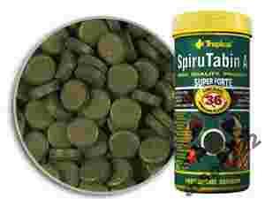 Roślinny pokarm w postaci samoprzylepnych tabletek z dużą (36%) zawartością glonów Spirulina platensis. Przeznaczony dla młodych, glonożernych pielęgnic afrykańskich oraz innych ryb, w tym również morskich, wymagających w diecie drobnego pokarmu roślinnego. Glony Spirulina platensis pobudzają system immunologiczny ryb i wpływają pozytywnie na procesy trawienia. Są źródłem nienasyconych kwasów tłuszczowych, łatwo przyswajalnego białka bogatego w aminokwasy egzogenne, witamin i mikroelementów, które zapewniają rybom doskonałą kondycję, intensywny wzrost i witalność. Regularne stosowanie tabletek sprawia, iż kolory ryb, dzięki zawartym w spirulinie karotenoidom, nabierają intensywności i blasku. Dla urozmaicenia diety ryb roślinożernych polecamy również pokarmy: VegeTabin A, SpiruTabin.
