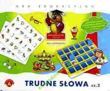 Gra logopedyczna "Trudne słowa - cz. 2" ma na celu rozwój mowy dziecka w wieku przedszkolnym i wczesnoszkolnym w zakresie poprawnego wymawiania głoski "r", w układach opozycyjnych z "l" i "j", poszerzenia słownika czynnego oraz rozwoju percepcji słuchowej. Są to istotne umiejętności w procesie nauki mówienia, czytania i pisania. Podczas gry uczestnicy ćwiczą różnicowanie głosek, a dodatkowo spostrzeganie, pamięć wzrokową, słuchową i koncentrację uwagi. Grę można wykorzystać do zabawy w domu z rodzicami, w szkole, w pracy terapeutycznej z logopedą. Gracz, na którego przyszła kolej otwiera 2 klapki plastikowej tablicy. Wyraźnie wymawia nazwy odkrytych obrazków. Istotne jest, aby uczestnik wymówił je prawidłowo. Za prawidłowe samodzielne powiedzenie nazwy, gracz otrzymuje 2 punkty. Za odkrycie pary takich samych obrazków uczestnik otrzymuje dodatkowo 1 punkt. Wygrywa ten, kto zdobędzie najwięcej punktów.