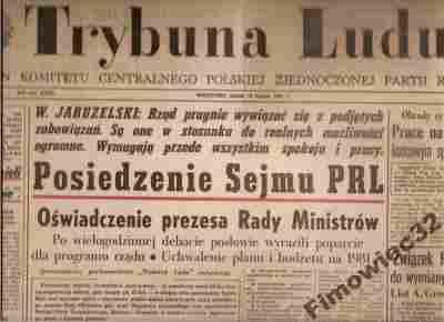 Trybuna Ludu 13.2.1981 orginał stan wojenny 30 lat