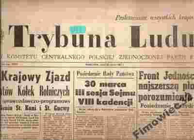 Trybuna Ludu - Ilustrowany Dziennik Polityczno - Informacyjny . W czasopiśmie można przeczytać wiele ciekawych artykułów politycznych , naukowych , informacyjnych dotyczących Polski i Świata z tamtego okresu. W każdmy numerze gazety znajdują się ciekawe działy i artykuły: 8 stron.Serdecznie zapraszam do lektury. Gazeta jest orginalna , nie reprint , równiez nie kserokopia. Stan czasopisma jak na zdjęciu,sam oceniam jako dobry(brak str.7 i 8 ) .Czasopismo można obejrzeć w Warszawie i kupić osobiscie. Uwaga!Jeżeli zdjęcie nie przedtstawia całego przedmiotu to oznacza że nie zmieścił się on na skanerze.Jednak sprzedawany jest w całosci . Ten Przedmiot jest na stanie - dosłownie pod ręką przy komputerze.Zamawiająć większą ilość przedmiotów za wysyłkę płacicie Państwo tylko raz - tyle co za wysyłkę jednego przedmiotu. Szybka wysyłka. Na życzenie wystawiamy fakturę Vat . W przypadku wysyłki listem zwykłym czyli niepoleconym - nie jesteśmy ponieść za nią odpowiedziaści.Taka przesyłka jest nierejestrowana i nie możemy reklamować jej na poczcie.Możecie Państwo również odebrać zamówione przedmioty osobiście lub za pośrednictwem własnego kuriera. Wówczas oczywiście nie doliczamy kosztów wysyłki. ************************************************************************************************** O koszty wysyłki za granicę proszę pytać mailowo lub telefonicznie. Koszty wysyłki za granicę : 1.Wysyłka do Ameryki Pólnocnej i Afryki - ekonomiczna , - priorytetowa , 2.Wysyłka do Ameryki Południowej i Środkowej oraz do Azji - ekonomiczna ,- priorytetowa , 3.Wysyłka do Australii i Oceanii - ekonomiczna ,- priorytetowa , 4.Wysyłka na Europę , całą Rosję ,Izrael oraz Cypr - ekonomiczna ,- priorytetowa , Wysyłka priorytetowa oznacza dostarczenie paczki w ciągu 7 dni roboczych. W przypadku wysyłki ekonomicznej czas dostarczenia paczki nie jest okreslony. W przypadku fimy kurierskiej koszt wysyłki jest kilkakrotnie wyższy. ************************************************************************************************** W przypadku pytań lub wątpliwości prosżę pisać [zasłonięte]@poczta.fm lub dzwonić ewentualnie sms (+48)501[zasłonięte]021
