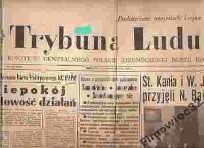 Trybuna Ludu - Ilustrowany Dziennik Polityczno - Informacyjny . W czasopiśmie można przeczytać wiele ciekawych artykułów politycznych , naukowych , informacyjnych dotyczących Polski i Świata z tamtego okresu. W każdmy numerze gazety znajdują się ciekawe działy i artykuły:    8 stron.Serdecznie zapraszam do lektury. Gazeta jest orginalna , nie reprint , równiez nie kserokopia. Stan czasopisma jak na zdjęciu,sam oceniam jako dobry(brak str.7 i 8 ) .Czasopismo można obejrzeć w Warszawie i kupić osobiscie. Uwaga!Jeżeli zdjęcie nie przedtstawia całego przedmiotu to oznacza że nie zmieścił się on na skanerze.Jednak sprzedawany jest w całosci . Ten Przedmiot jest na stanie - dosłownie pod ręką przy komputerze.Zamawiająć większą ilość przedmiotów za wysyłkę płacicie Państwo tylko raz - tyle co za wysyłkę jednego przedmiotu. Szybka wysyłka. Na życzenie wystawiamy fakturę Vat . W przypadku wysyłki listem zwykłym czyli niepoleconym - nie jesteśmy ponieść za nią odpowiedziaści.Taka przesyłka jest nierejestrowana i nie możemy reklamować jej na poczcie.Możecie Państwo również odebrać zamówione przedmioty osobiście lub za pośrednictwem własnego kuriera. Wówczas oczywiście nie doliczamy kosztów wysyłki. ************************************************************************************************** O koszty wysyłki za granicę proszę pytać mailowo lub telefonicznie. Koszty wysyłki za granicę : 1.Wysyłka do Ameryki Pólnocnej i Afryki - ekonomiczna , - priorytetowa , 2.Wysyłka do Ameryki Południowej i Środkowej oraz do Azji - ekonomiczna ,- priorytetowa , 3.Wysyłka do Australii i Oceanii - ekonomiczna ,- priorytetowa , 4.Wysyłka na Europę , całą Rosję ,Izrael oraz Cypr - ekonomiczna ,- priorytetowa , Wysyłka priorytetowa oznacza dostarczenie paczki w ciągu 7 dni roboczych. W przypadku wysyłki ekonomicznej czas dostarczenia paczki nie jest okreslony. W przypadku fimy kurierskiej koszt wysyłki jest kilkakrotnie wyższy. ************************************************************************************************** W przypadku pytań lub wątpliwości prosżę pisać [zasłonięte]@poczta.fm lub dzwonić ewentualnie sms (+48)501[zasłonięte]021