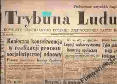 Trybuna Ludu - Ilustrowany Dziennik Polityczno - Informacyjny . W czasopiśmie można przeczytać wiele ciekawych artykułów politycznych , naukowych , informacyjnych dotyczących Polski i Świata z tamtego okresu. W każdmy numerze gazety znajdują się ciekawe działy i artykuły: 8 stron.Serdecznie zapraszam do lektury. Gazeta jest orginalna , nie reprint , równiez nie kserokopia. Stan czasopisma jak na zdjęciu,sam oceniam jako dobry(brak str.7 i 8 ) .Czasopismo można obejrzeć w Warszawie i kupić osobiscie. Uwaga!Jeżeli zdjęcie nie przedtstawia całego przedmiotu to oznacza że nie zmieścił się on na skanerze.Jednak sprzedawany jest w całosci . Ten Przedmiot jest na stanie - dosłownie pod ręką przy komputerze.Zamawiająć większą ilość przedmiotów za wysyłkę płacicie Państwo tylko raz - tyle co za wysyłkę jednego przedmiotu. Szybka wysyłka. Na życzenie wystawiamy fakturę Vat . W przypadku wysyłki listem zwykłym czyli niepoleconym - nie jesteśmy ponieść za nią odpowiedziaści.Taka przesyłka jest nierejestrowana i nie możemy reklamować jej na poczcie.Możecie Państwo również odebrać zamówione przedmioty osobiście lub za pośrednictwem własnego kuriera. Wówczas oczywiście nie doliczamy kosztów wysyłki. ************************************************************************************************** O koszty wysyłki za granicę proszę pytać mailowo lub telefonicznie. Koszty wysyłki za granicę : 1.Wysyłka do Ameryki Pólnocnej i Afryki - ekonomiczna , - priorytetowa , 2.Wysyłka do Ameryki Południowej i Środkowej oraz do Azji - ekonomiczna ,- priorytetowa , 3.Wysyłka do Australii i Oceanii - ekonomiczna ,- priorytetowa , 4.Wysyłka na Europę , całą Rosję ,Izrael oraz Cypr - ekonomiczna ,- priorytetowa , Wysyłka priorytetowa oznacza dostarczenie paczki w ciągu 7 dni roboczych. W przypadku wysyłki ekonomicznej czas dostarczenia paczki nie jest okreslony. W przypadku fimy kurierskiej koszt wysyłki jest kilkakrotnie wyższy. ************************************************************************************************** W przypadku pytań lub wątpliwości prosżę pisać [zasłonięte]@poczta.fm lub dzwonić ewentualnie sms (+48)501[zasłonięte]021