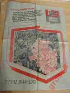 pożółkłe kartki, zagięcia w miejscu zgięcia gazety