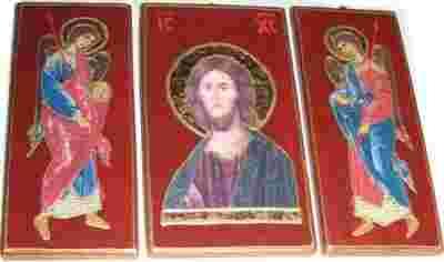 Tryptyk to trzy ikonki, przedstawiają Chrystusa Pantokratora