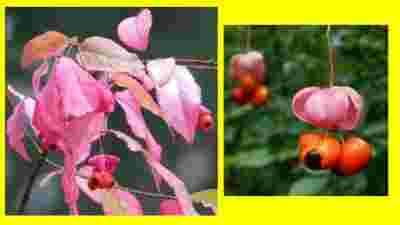 Z torebek tych zwisają na sznureczkach czarne nasiona wystające z czerwonoszkarłatnej osnówki.