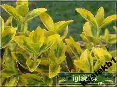 Liście ciemnozielone, z dominującym żółtym marginesem.