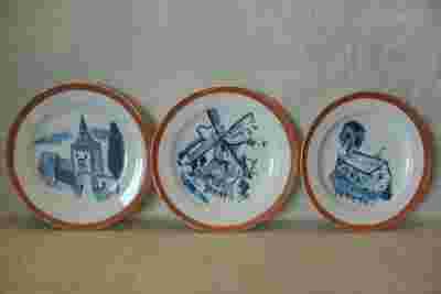 trzy bardzo stare Flamandzkie talerze ozdone