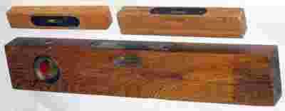 Trzy stare polskie drewniane waserwagi.