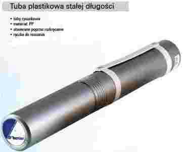 Wykonana z polipropylenu , o stałej długości , w kolorze srebrnym , otwierana poprzez rozkręcanie , z wygodną plastikową rączką.