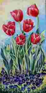 Tulipany czerwone _ kwiaty_ obraz autorski 30x60