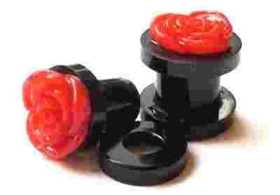 tunel czarny akryl z odkręcaną róża czerwona 3mm