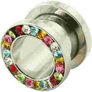 Tunel plug 6 mm stal kolorowe kryształki piercing