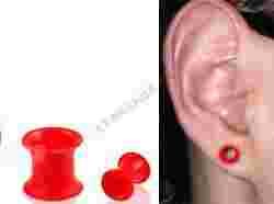 Przedmiotem aukcji jest delikatny tunel silikonowy do ucha w kolorze czerwonym.