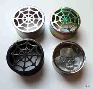 Przedmiotem sprzedaży są tunele 22mm wykonane ze stali chirurgicznej 316L. Do wyboru 4 wzory: pajęczyna srebrna, pajczyna tęczowa (anodowana), pajęczyna czarna (anodowana), czaszka w kapeluszu.