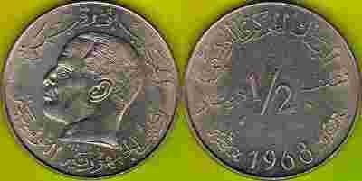 Tunezja 1/2 Dinar 1968 r.