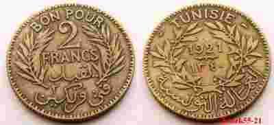 TUNEZJA FRANCUSKA 2 FRANCS 1921 -1340 A