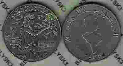 TUNEZJA /KM-319/ 1 DINAR 1988 r.F.A.O.