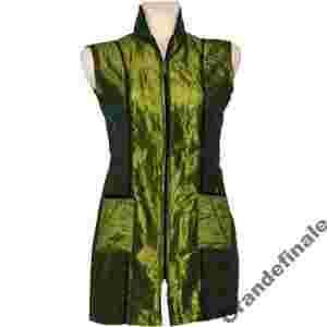 Ubranie dla fryzjerki i groomerki typu tunika, bez rękawa,zapinana na zamek błyskawiczny, posiada dwie kieszenie naszyte. Doskonała na letnie dni w pracy, dobrze komponuje się także ze spodniami z kolekcji Grande Finale. Tkanina tafta kreszowana , powoduje iż włosy nie przyczepiają się do ubioru ani nie przedostają się na jego drugą stronę. Krój optycznie wyszczuplający przez zastosowanie cięć pionowych i połączenie kolorów. Kolorystyka jak na zdjęciu.