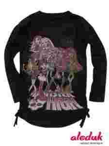 Z przodu nadruk-wizerunek Monster High , po bokach sznureczki, dzięki którym można uzyskać