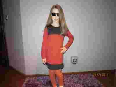 TUNIKA-SUKIENKA DLA DZIEWCZYKI RUDO-CZARNA 134