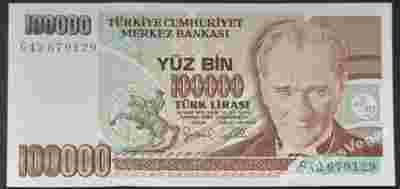 Turcja 100 000 Lira 1970 (1977) UNC. P-206