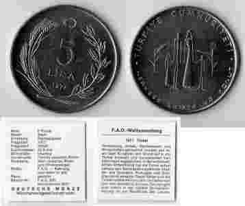 TURCJA 1977 5 LIRA FAO
