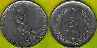 Turcja 2 1/2 Lira 1960 r.