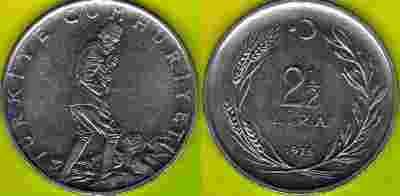 Turcja 2 1/2 Lira 1975 r.