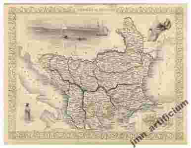 TURCJA EUROPEJSKA mapa ilustrowana 1851r. reprint