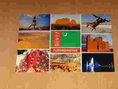 TURKMENISTAN - flaga narodowa , koń , zabytki