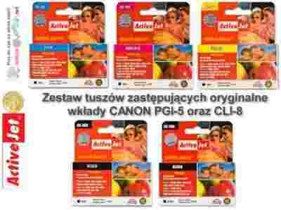 Przedmiotem aukcji jest: ZESTAW TUSZÓW ACTIVEJET BLACK, CYAN, MAGENTA, YELLOW BEZ CHIP'A DO DRUKAREK CANON - ZAMIENNIKI CLI-8 oraz PGI-5 - wersja SUPREME - CAŁKOWICIE NOWE!