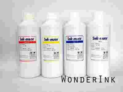 Zdjęcie przedstawia oryginalne litrowe butelki, z których konfekcjonujemy tusz do mniejszych 100ml. Dzięki temu masz pewność, że otrzymujesz oryginalny tusz Ink-Mate.