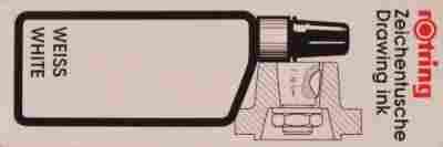 Tusz kreślarski biały w butelce z aplikatorem, renomowanej firmy Rotring.